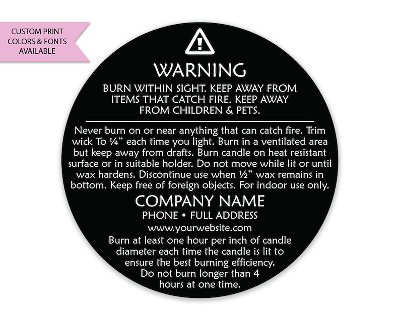 Candle Warning Labels | Etsy Candle Warning Labels, Candle Warning Stickers, Custom Candle Warning Labels, Custom Candle Warning Sticker, Customized Candle Warning Label WicCandles (93) $24.99 FREE shipping Candle Warning Label Template, Editable Candle Safety Sticker, Printable Circle Candle Instructions, Round Minimalist Design, Canva Template DesignYouWant (23) $6.77 $8.46