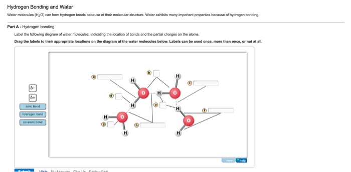 › 36085950 › Physical_Chemistry(PDF) Physical Chemistry Thermodynamics, Structure, and ... Enter the email address you signed up with and we'll email you a reset link. learning through art water molecules and hydrogen bonding Part A Drag the labels to their appropriate locations in this diagram. They use heat energy to break the attractive forces bonds. Ag the labels to their appropriate locations on the figure. The water molecules within pure ice form hydrogen bonds with each other creating a perfect lattice structure as seen in the image below.