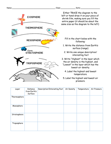 PDF Layers of the Atmosphere - Virginia Have students label a diagram depicting the layers of the Earth's atmosphere before making their models and then use this diagram as a rough draft or plan for their model. Have students make models in their small groups, rather than individually. Provide pictures (stickers work well) of objects that can be found in the different layers.