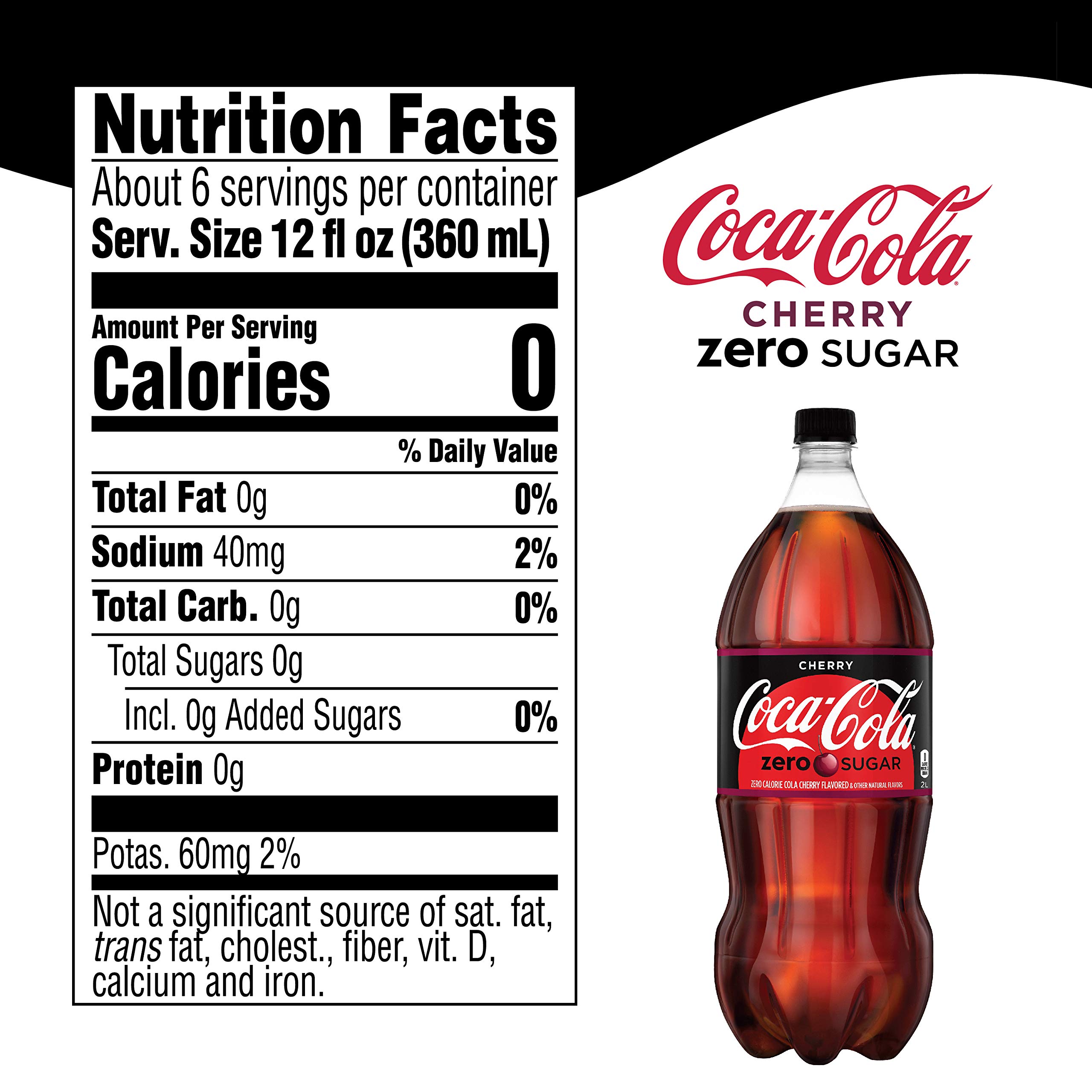 Coca-Cola® Original | Coca-Cola® 75mg 3%. Uninformed. Total Carbohydrate 65g. 65g 24%. Uninformed. Total Sugars 65g. 65g. Includes 65g Added Sugars. 65g 130%. Coca-Cola® Cherry | Coca-Cola® Cherry soda just got a new look with Coca-Cola® Cherry. Try this sweet cola drink today, available for purchase in stores and online! Cookie Notice. We use cookies to provide a personalized site experience. ... VIEW NUTRITION FACTS. Details. Enjoy Coca-Cola Cherry's crisp, delicious taste with meals, on the go, or to share. Serve ice cold for ... Diet Coke Soda Pop Cola - 2 Lit - Online Groceries | Shaw's Shop Diet Coke Soda Pop Cola - 2 Liter from Shaw's. Browse our wide selection of Cola for Delivery or Drive Up & Go to pick up at the store! ... Nutrition Facts; Serving Size: 12fl oz Servings Per Container: About 6: Calories: Amount Per Serving 0 ... Consult Product label for the most current and accurate information. Coca-Cola® Soda, 2 L - Kroger Coca-Cola® Soda. 2 L UPC: 0004900005010. Purchase Options. Located in AISLE 39. SNAP EBT Eligible. $229. Sign In to Add.