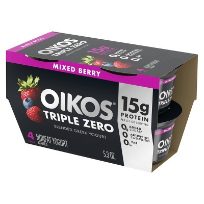 Amazon.com: Customer reviews: Oikos Triple Zero Greek Nonfat Yogurt ... This Yogurt is very tasty considering it is marked as triple zero. I was concerned that the expiration date will be too soon from the date of arrival but we had one month to use it. 3 people found this helpful. ... but less sugary yogurt and I appreciate the Oikos Triple Zero at least uses Stevia. The vanilla has a nice flavor, not too ... Oikos® Greek Yogurt GREEK Yogurt & Protein. When it comes to nutrition and Greek yogurt, we are all about the protein. And Oikos packs a ton of it, with at least 11 grams in every 5.3-oz serving. A tank full of mighty, mighty protein. And all you have to do is peel back a lid. Boom. Learn More. Dannon Oikos Triple Zero Yogurts are ONLY $0.29 each at Kroger!! Dannon Oikos Triple Zero Yogurts are ONLY $0.29 each at Kroger!! Feb 16 2022 @1:45 pm Comment Sharing is caring! Dannon Oikos Triple Zero Yogurt are on sale for $1.19, plus Buy 2, Get one FREE! That's not it! We also have a fantastic Ibotta Rebate* that is a limit 5 for these! That means these yummy Yogurt items will only cost us $0.29 each!