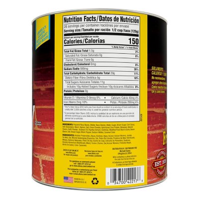 Heinz Vegetarian Beans in Rich Tomato Sauce No Meat Nutrition Facts About 3.5 servings per container Serving Size 0.5 cup Amount per serving Calories 140 % Daily Value* Total Fat 0.5g 1 Saturated Fat 0g 0 Trans Fat 0g Cholesterol 0mg 0 Sodium 520mg 23 Total Carbohydrate 29g 11 Dietary Fiber 5g 18 Total Sugars 12g Includes 9g Added Sugars 19 Protein 7g Vitamin D 0 Calcium 50mg 4 Iron 1.8mg 10