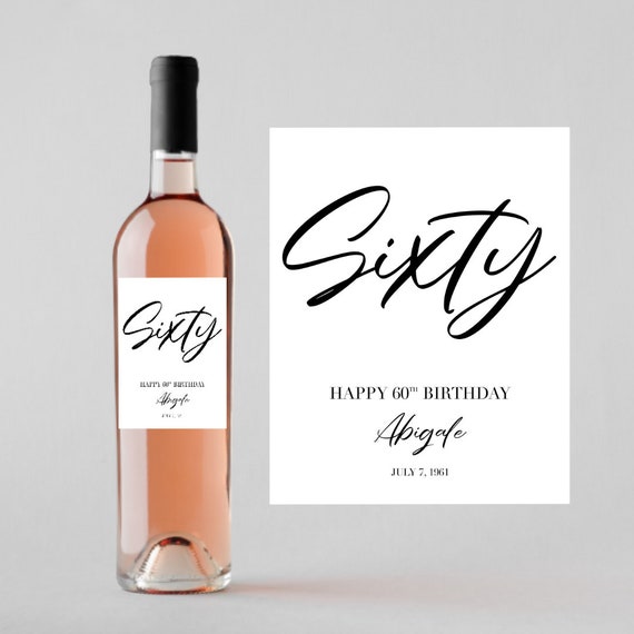 60th Wine Label | Etsy 60th wine label (1,214 Results) Price ($) Wine Label Birthday Wine Labels, Wine Bottle Label Template, Instant Download, Any Age, Sixty & Stunning, 50th Birthday 40th, SRF StudioPlusOne (1,056) $3.90 $6.50 (40% off) SIXTY - 60th Birthday Wine Label - Personalized Birthday Label - Birthday Gift for Women SmallDetailsLabel (1,480) $4.99 Bestseller