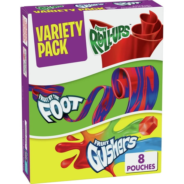 Betty Crocker Fruit Snacks, Gushers, Variety Snack Pack - Instacart SNACKS FOR KIDS: With a gummy outside and fruity, juicy center, these variety snacks are bursting with fun. ON-THE-GO SNACK: 90 calories per pouch, these individual snacks are the perfect addition to any day out. BOX CONTAINS: 1 box, 6 pouches of tropical flavor gushers kids snacks.