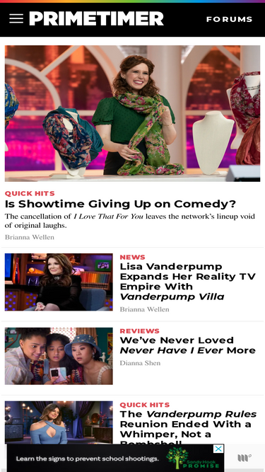 TV and Movies - Blogs & Forums - QVC Belle by Kim Gravel. Breezies. Candace Cameron Bure. Cuddl Duds. Denim & Co. Isaac Mizrahi Live! J Jason Wu. Koolaburra by UGG. Lands' End. Community Chat - Blogs & Forums - QVC Koolaburra by UGG. Lands' End. LOGO by Lori Goldstein. NYDJ. Peace Love World. Privé Revaux. Quacker Factory. Susan Graver. Women with Control. PRIMETIMER - TV News, Reviews and More 910. people online Join the conversation . TV Today Whitney Cummings Delivers Jokes, Shania Twain Gets the Netflix Doc Treatment ALSO: Street Food: USA, NBC's Snake in the Grass preview, Shark Week, and more. Claire Spellberg Lustig. Reviews. Recommended: Snake in the Grass Survivor meets The Mole, successfully scratching several itches at once.