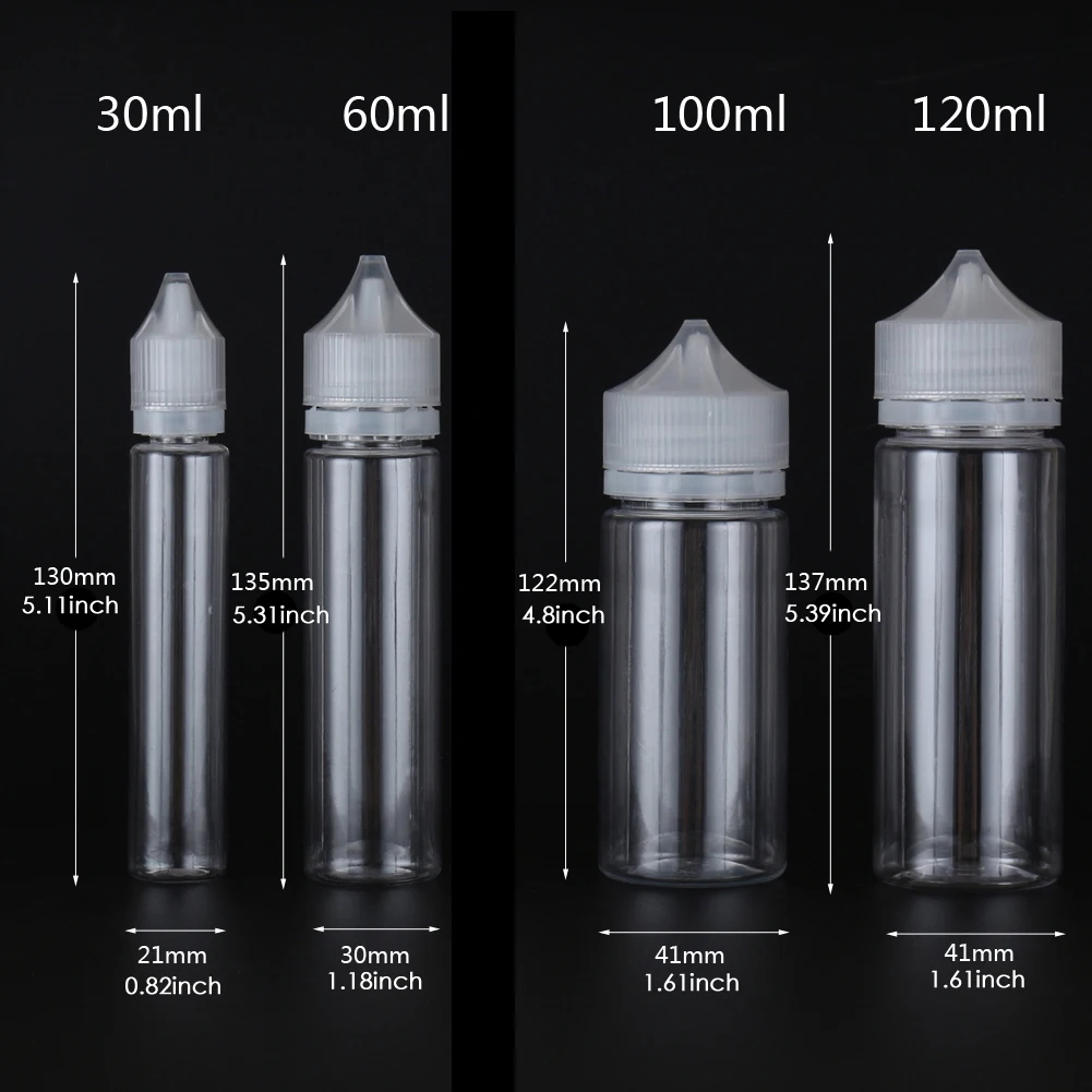 100 Pcs X 10 Ml-120 Ml Transparan Botol Pipet Plastik Kosong E Liquid Jus Minyak Hewan Peliharaan Jelas Wadah dengan CRC Topi Tetes