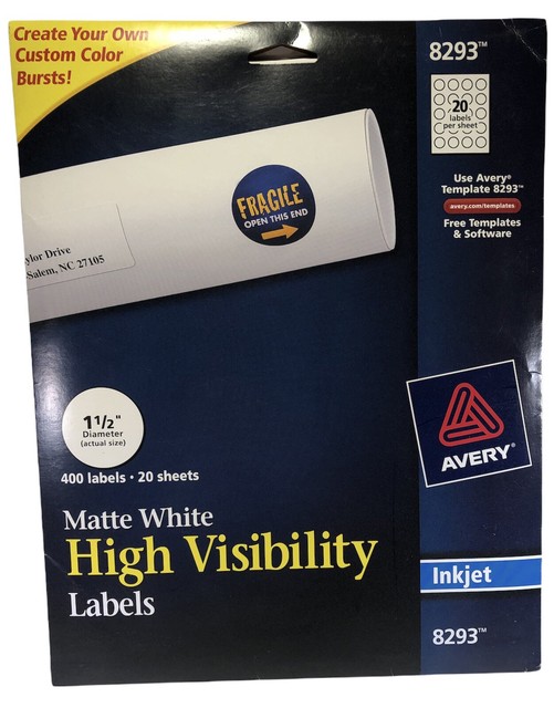 Avery 8293 High Visibility Labels - Office Depot Avery 8293 High-Visibility Labels Item #422971 4.7 (129) + 7 More 1 / 10 Description Versatile labels provide the freedom needed for nearly any project. Design and print engaging round labels for your project with Avery High Visibility White Labels. Ensure a clean printing job and prevent any misalignments or jams using Avery Sure Feed Technology.