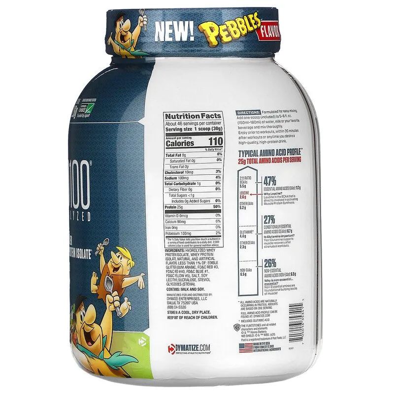 Dymatize ISO 100 Whey Protein Isolate Fruity Pebbles 5 lbs. - GNC Dymatize ISO 100 Whey Protein Isolate - Fruity Pebbles™: Isolate^ For Muscle Support ISO 100 is simply muscle-building fuel. If your goal is gaining muscle size and strength, then ISO 100 is your perfect workout partner. Loaded with muscle-building amino acids, ISO100 can support even the most serious resistance training programs.