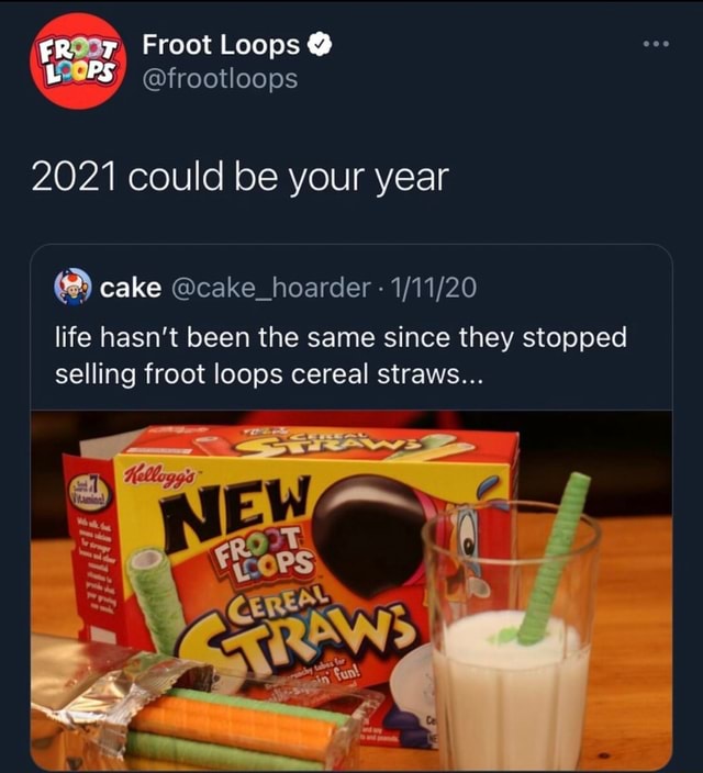 Fruit loop straws : memes - reddit BRING THE FROOT LOOPS STRAWS BACK IMMEDIATELY! This meme gave me a flashback. 684. Reply. Share. ... Why did these things ever get discontinued? 50. Reply. Share. Report Save Follow. level 2 · 2 yr. ago. RageFace Against the Machine. Ikr they were quite literally the greatest. 13. Reply. Share. Report Save Follow. level 1 · 2 yr. ago. memer.