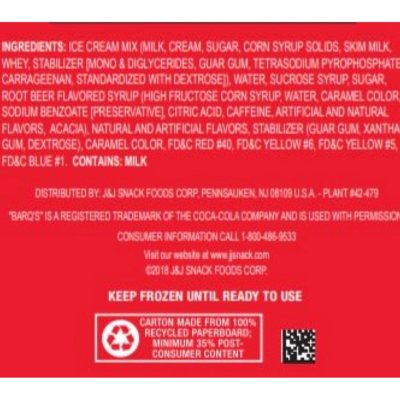 Barq's Frozen Root Beer and Vanilla Ice Cream Floats Barq's® FROZEN ROOT BEER & VANILLA ICE CREAM FLOATS. Delivering a nostalgic Ice Cream Treat in convenient grab-n-go packaging. Available in 3 fl. oz. tubes and 10 fl. oz. cups. Only 90 calories per serving! IT'S GOOD. SINCE 1898. Barq's® FROZEN ROOT BEER & VANILLA ICE CREAM FLOATS.