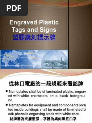 Phenolic Labels | Engraved Phenolic Labels, Phenolic Plates & Tags Phenolic is a non-conductive material (Lamicoid) that is good to use for developing phenolic labels and tags for the electrical industry. The phenolic labels have good characteristics such as resistance to abrasion, heat, and chemicals. Also, phenolic plates work as electrical insulators. Plastic Signs and Tags - Engraving and Printing - AGE Advanced Graphic Engraving is the leading provider of custom plastic tags, corporate identity, signage, vinyl coated plastics, custom safety signs and more ... The terms 'phenolic', 'lamacoid', and 'traffolyte' are sometimes used generically to identify 'engraved tags'. True phenolic is very brittle—it flakes and scratches ... Engraving Plastics | Custom-size Plastic Engraving Materials This rigid phenolic engraving plastic is right at home for pipe markers, valve tags, instrument panels in boiler rooms, engine rooms and similar circumstances. Because the material is rigid, it must be cut with a rotary saw and engraved slowly. Let us prepare your sign blanks and valve tags, then you can do the engraving. Now that's teamwork! Phenolic and Lamicoid Material Characteristics | Nameplates, Labels ... Phenolic and Lamicoid are synonymous terms for specifying laminated engraving stocks for products such as tags or legend plates. These terms have been replaced with Flexible Engraving Stock. Roemer Industries, Inc. is able to produce custom quality Flexible Engraving Stock nameplates, labels and signage to meet your exact specifications.