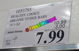 100 Calorie Healthy Choice Fudge Bars at Costco are Back! Costco Item Number & Price Organic Healthy Choice Fudge Bars are Costco Item Number 1053793 and cost $10.79 for 18 fudge bars, or $.60 each. 100 Calorie Organic Fudge Bars from Healthy Choice - Now at Costco! You might also like these 100 calorie or less fudge bars available to order on Amazon: Healthy Choice Fudge Bars Nutritional Panel