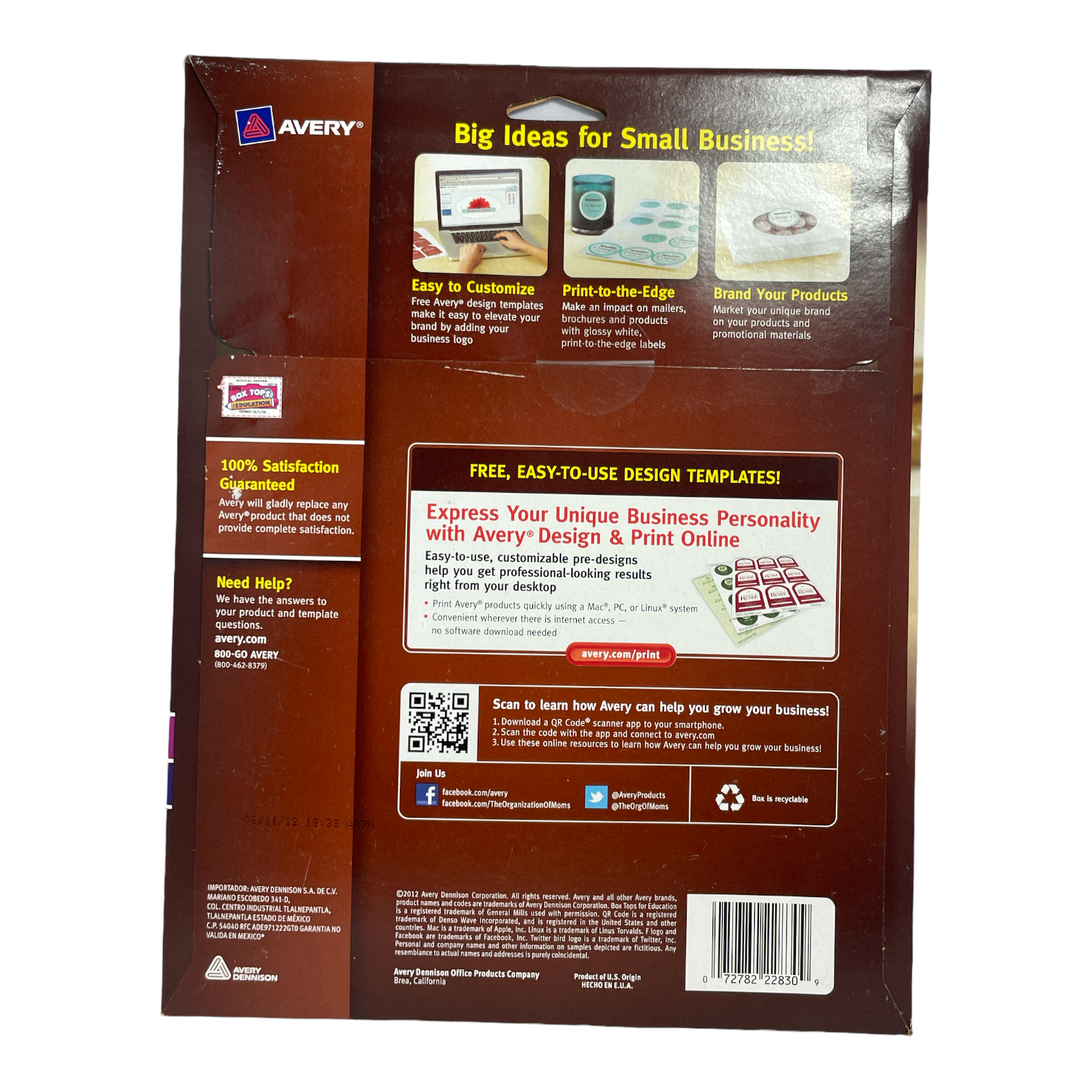 Avery Label Sizes Search | Find The Right Size - OfficeCrave.com Use our Avery Label sizes index to help you find the right label for your project. Free Shipping On All Ink & Toner. Wholesale Supplies (877) 873-1336. Show me more results . ... 2.5" dia, Glossy White, 90/PK (22830) 0.5" x 0.75" Avery Labels. Avery Removable Multi-Use Labels, Inkjet/Laser Printers, 0.5 x 0.75, White, 36/Sheet, 28 Sheets/Pack ...
