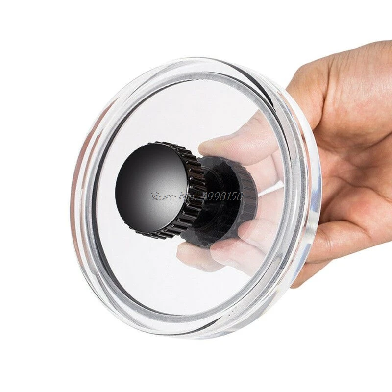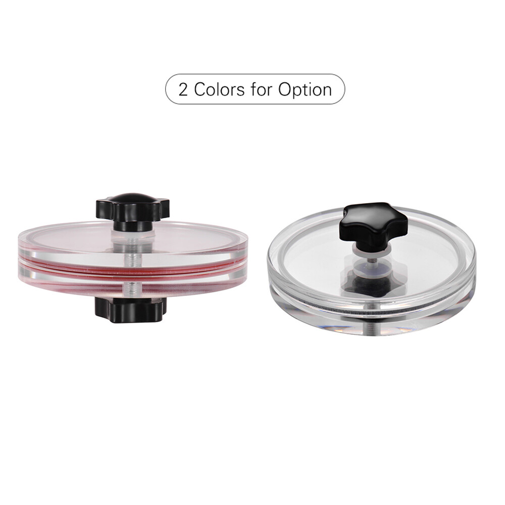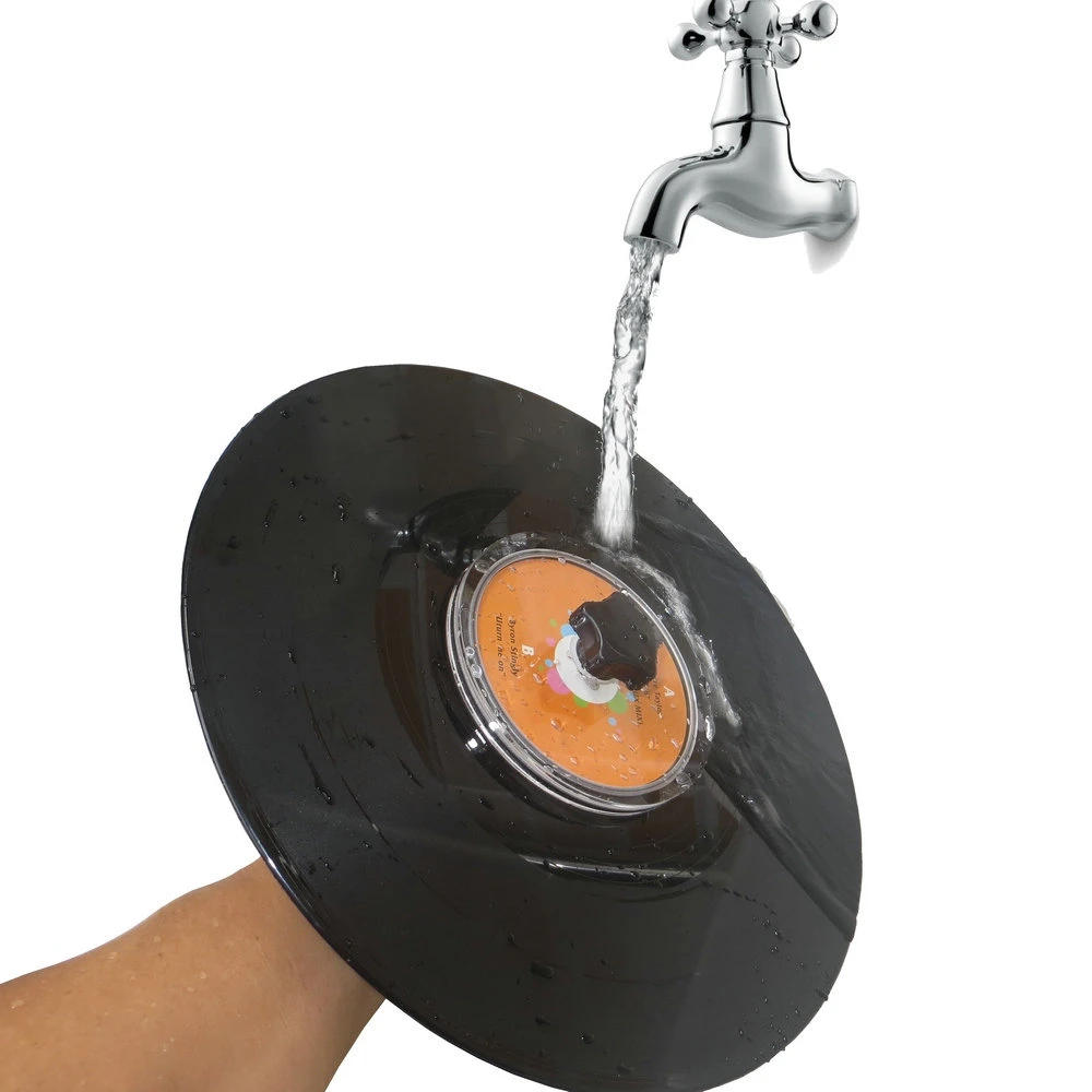 LP Vinyl Record Label Waterproof Saver Clamp/Cleaning Protector Label is sealed with rubber rings in an airtight chamber. Includes industrial quality handle which enables a SECURE GRIP, suspending, rotating the record and allow cleaning records without touching the vinyl! Records will have cleaner sound and your stylus will last longer.