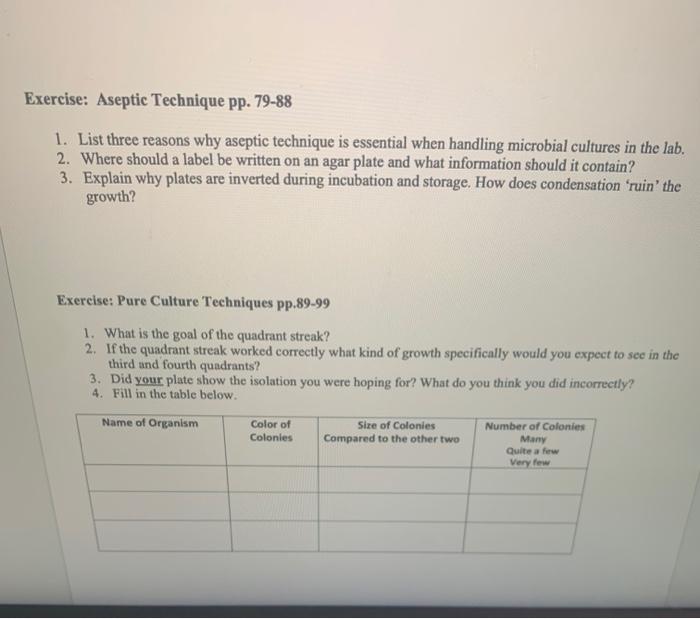 Aseptic Laboratory Techniques: Plating Methods - JoVE by ER Sanders · 2012 · Cited by 429 — Label around the edge of the bottom (not the lid) of an agar plate with at least your name, the date, the type of growth medium, ... Q 9 2 Pts Where should a label be written on an agar plate ... The label should be written on the bottom of the agar plate and not on the lid because when the agar plate is being stored/incubated, it is stored upside down in order to prevent the evaporation of water to drip onto the agar. This allows better visibility of the label without having to flip the agar plate over. Solved 1. Where should you label an agar plate before | Chegg.com Question: 1. Where should you label an agar plate before inoculating with bacteria? On the side of lid so it doesn't affect viewing On the lid over the top of quadrant four On the bottom containing the agar 2. In which quadrant will you expect to see isolated colonies? First O Second O Third or fourth 3.