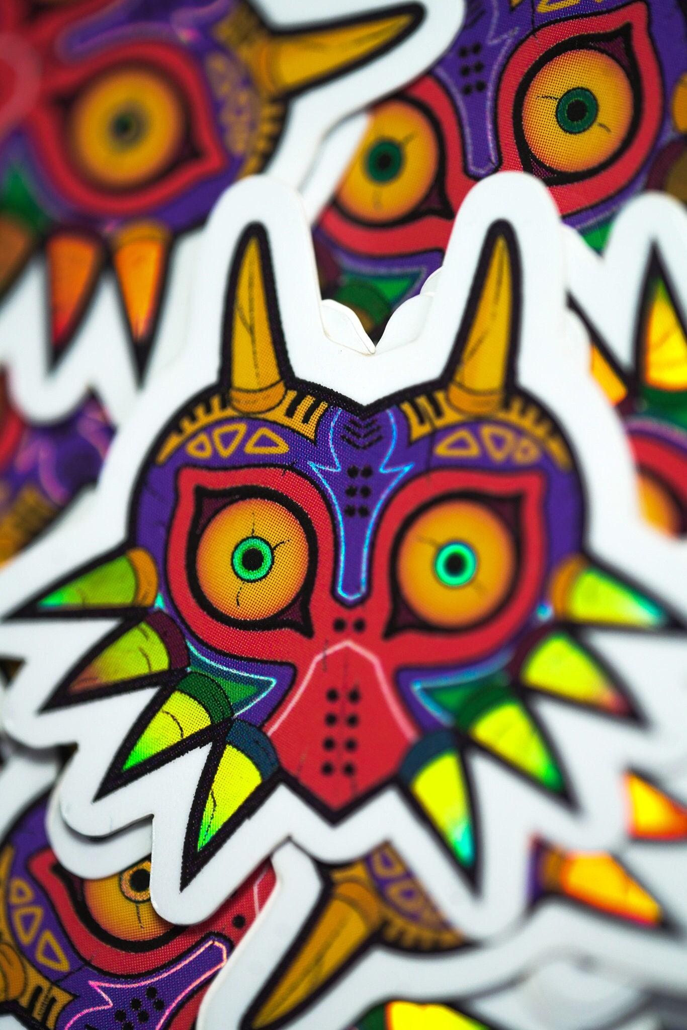 Majoras Mask Legend of Zelda Inspired vinyl decal/sticker Show your love for the Legend of Zelda with this Majoras Mask vinyl decal! There will be no background, as the background becomes whatever you stick it to. Decal will stick to any smooth surface Decal can be 4 - 9 Sizes are approximate, I do my best to get as close to the inch as possible. ... Anime Cat Holographic Vinyl Decal Ad by ...