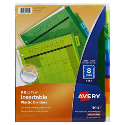 Avery Products Template Compatibility | Avery.com Preview Production Description Same As; Big Tab Index Maker Easy Apply Dividers, 5-Tab: 11490, 11492: Big Tab Index Maker Easy Apply Dividers, 8-Tab: 11491, 11493 Blank Sheet Labels | Avery Shop by Tab. Shop by Tab; 5 Tab; 8 Tab; 10 Tab; 12 Tab; 15 Tab; Browse more; Binders. ... and materials! Perfect for every product and project, no matter how big or small! Shop by Label Shape. Choose from popular label shapes like circles, squares, ovals & rectangles or add some pop to your projects with specialty labels like hearts, stars ...