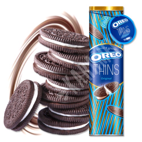 OREO Thins Chocolate Sandwich Cookies, Dark Chocolate Flavored Creme A Taste of Nostalgia Family-size packs of OREO Thins cookies make it easy to share the iconic treat. Delight friends at work or in the classroom, put a sweet twist on party favors, goodie jars, and gift bags, or surprise a special someone with a care package or road trip pack. Add this package of OREO Thins Dark Chocolate Flavored Creme ...