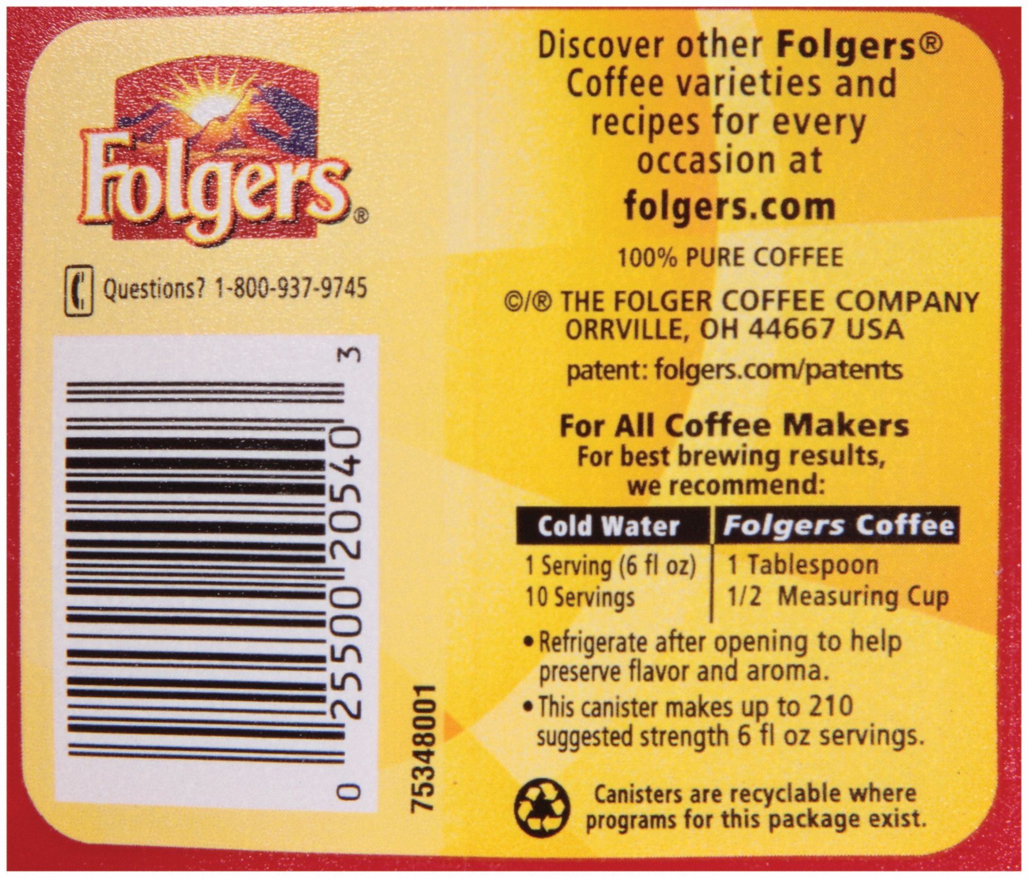 Folgers Classic Decaf Ground Coffee, Medium Roast, 25.9-Ounce Folgers has you covered — so you never have to miss out on The Best Part of Wakin’ Up. This delicious Folgers decaf coffee lets you enjoy the classic Folgers medium roast flavor and aroma you crave, without all the caffeine. In fact, it’s 99.7% caffeine free. Yet the smooth, rich taste is just as satisfying as ever. Folgers Classic Decaf ... Caffeine in Folgers Coffee | livestrong In large part, this is due to Folgers not listing the exact amount of caffeine that their decaffeinated coffee still contains. In fact, Folgers and other coffee companies do not need to disclose caffeine or other nutrition information on their label, according to the Food and Drug Administration. Though this may not be an issue for most people ... Folgers Classic Roast Coffee K-Cup Pods, Medium Roast Coffee, … Nutrition facts. Refer to the product label for full dietary information, which may be available as an alternative product image. 60.0 Servings Per Container. Serving Size 1 Pod. Amount per serving. Calories 0. Amount per serving % Daily Value* Total Fat 0g: 0%: Total Carbohydrate 0g: 0%: Protein 0g * The % Daily Value (DV) tells you how much a nutrient in a serving of food contributes to a ...
