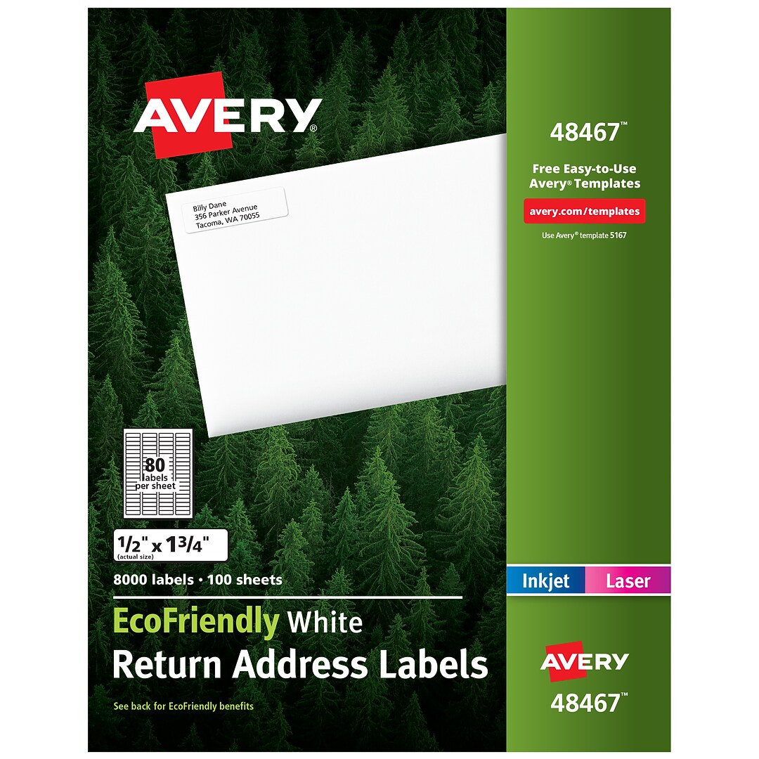 Amazon.com: Avery 5167 Return Address Labels Avery 5167 Easy Peel Return Address Labels, Laser, 1/2 X 1-3/4, White, 8000/Bx 4.5 out of 5 stars 16 Avery Easy Peel Return Address Labels for Inkjet Printers, 0.5 Inch x 1.75 Inch, White, Pack of 2000 (8167)