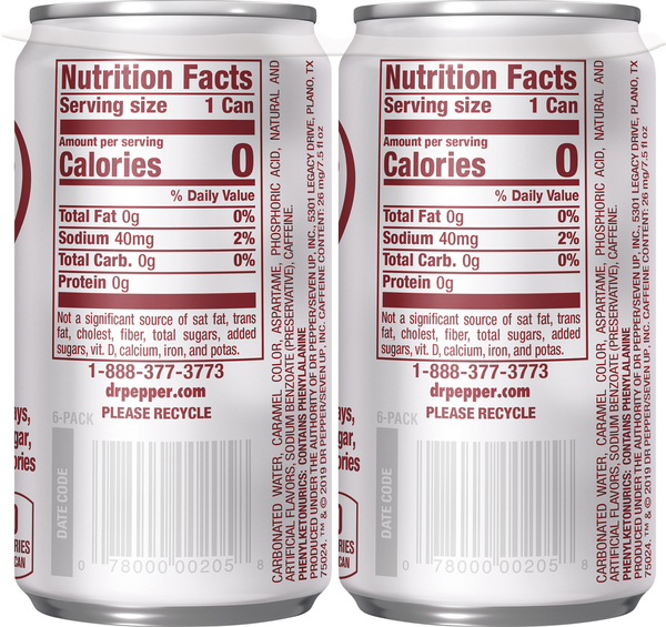 Diet dr pepper ingredients label. Diet Dr Pepper Soda, 12 fl oz bottles, 8 pack - Walmart.com Nutrition facts. Refer to the product label for full dietary information, which may be available as an alternative product image. 1 Servings Per Container. Serving Size 12 fl oz. Amount per serving. Calories 0. ... Diet Dr. Pepper and Diet Coke are my two favorite soda's/pop ever created. I am usually more of a Diet Coke kinda gal, but lately I ... Dr. Pepper Allergy and Ingredient Information - Allergen Inside Vitamin C. 0%. Calcium. 0%. Iron. 0%. *Percentage Daily Values are based on a 2,000 calorie diet. Your daily values may be higher or lower depending on your calorie needs. DISTRIBUTED BY: Dr Pepper Snapple Group, Inc. Diet Dr Pepper Nutrition Label - DietProTalk.com Diet dr pepper nutrition provides 18 percent for the daily recommended value of vitamin C 10 percent for calcium, 880 milligrams each. And 25 percent for vitamin E. Also, Dr Pepper Diets greatest limit is 16.9 oz Diet Soda. The diet drink provides a level of energy without the extra calories, with no caffeine content. › Diet_by_DR_PEPPER_533134Diet by DR PEPPER nutrition facts and analysis. Diet by DR PEPPER nutrition facts and analysis per 12 oza (355.0 ml) aprx (355.0 g) Foods related to diet by dr pepper Diet soda by DR PEPPER Diet, cherry by DR PEPPER Diet dr pepper by Dr. Pepper/Seven Up, Inc. Dr pepper, diet soda by Dr. Pepper/Seven Up, Inc. Dr pepper, diet soda by Dr. Pepper/Seven Up, Inc.