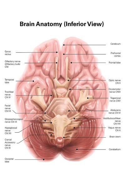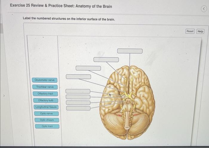 Label the view of the inferior surface of the brain