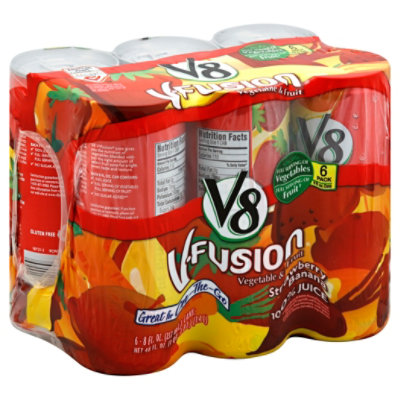 V8 V-Fusion Juice, Strawberry Banana - Fooducate Personalized health review for V8 V-Fusion Juice, Strawberry Banana: 100 calories, nutrition grade (C), problematic ingredients, and more. Learn the good & bad for 250,000+ products.