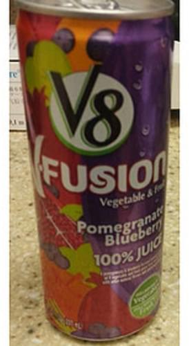 V8 V-Fusion 100% Juice, Variety Pack, 46 Ounce (Pack of 4) V8 v-fusion is a breakthrough juice that gives you a full serving of vegetables plus a full serving of fruit in every 8-ounce glass. The result is a nutrition-packed beverage made of 100% juice that's also delicious and refreshing. V8 v-fusion even includes the powerful antioxidants a, c and e, plus, it has no added sugar.