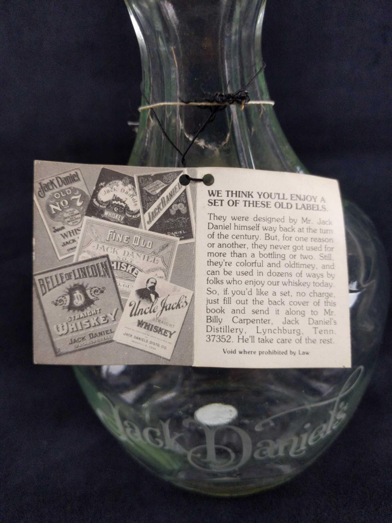 Unopened 1979 Jack Daniel's Belle of Lincoln Decanter, in box with tag ... Unopened 1979 Jack Daniel's Belle of Lincoln Decanter, in box with tag, Bottle No. 1 By Liz, 9 years ago on Wine & Other Vintage Alcohol Values 35,252 My father purchased the Belle of Lincoln decanter in 1979 from a liquor distributor and has had it in storage for the last 34 years. The bottle has never been opened and the seal is intact.