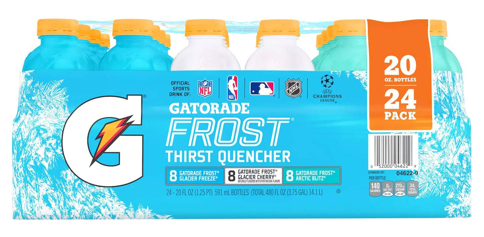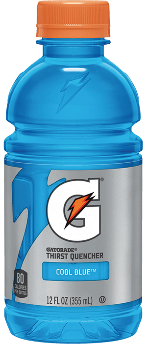 Calories in Gatorade Thirst Quencher Cool Blue Beverage (20 ... Nutrition summary: Calories 140 Fat 0g Carbs 36g Protein 0g There are 140 calories in 1 bottle (591 ml) of Gatorade Thirst Quencher Cool Blue Beverage (20 oz). Calorie breakdown: 0% fat, 100% carbs, 0% protein. Related Energy Drinks from Gatorade: Thirst Quencher Frost Glacier Freeze Beverage (20 oz) Zero Glacier Freeze (20 oz) Gatorlyte Gatorade Thirst Quencher Cool Blue 28oz Bottle Over 50 years in the making, it's the most scientifically researched and game-tested way to replace the electrolytes you lose in sweat. Nutrition & Ingredients Cool Blue Serving Size: 12 fl oz (360 mL) Nutrition Facts Carbs to help refuel working muscles 80 Calories 22 g Carbohydrates Electrolytes to help replenish what you lose in sweat 160 mg The Facts About Your Favorite Foods and Beverages (U.S ... Additional package sizesClick to view. 20 fl oz 12 fl oz 28 fl oz. OU Kosher Pareve. gatorade.com. Where To Buy. Product Fact Sheet. Product formulation, packaging and promotions may change. For current information, refer to packaging on store shelves. Information may also differ from package labels because of the limited space on some packages.