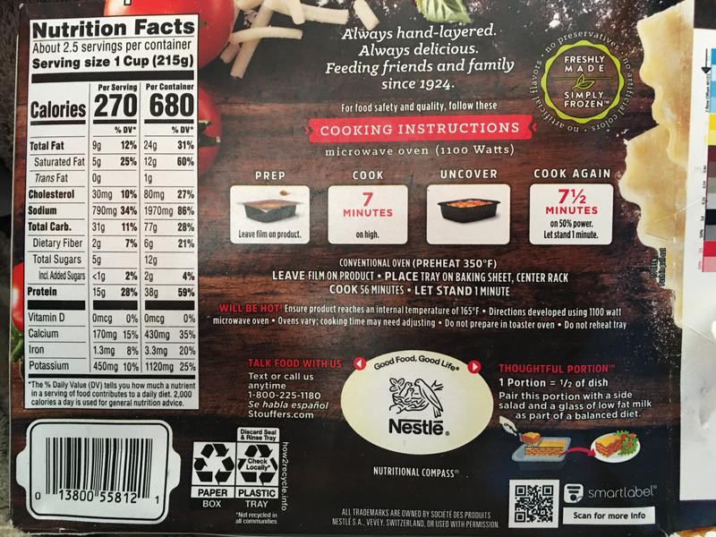 42 stouffer's lasagna family size nutrition label