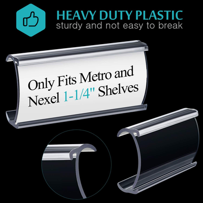 Plastic Metro Shelf Tags Shelf Wire Label Holders for Wire Shelving Clear Metro Shelf Label Clips Book Shelves Label Holders 3 x 1.25 Inches for Wire