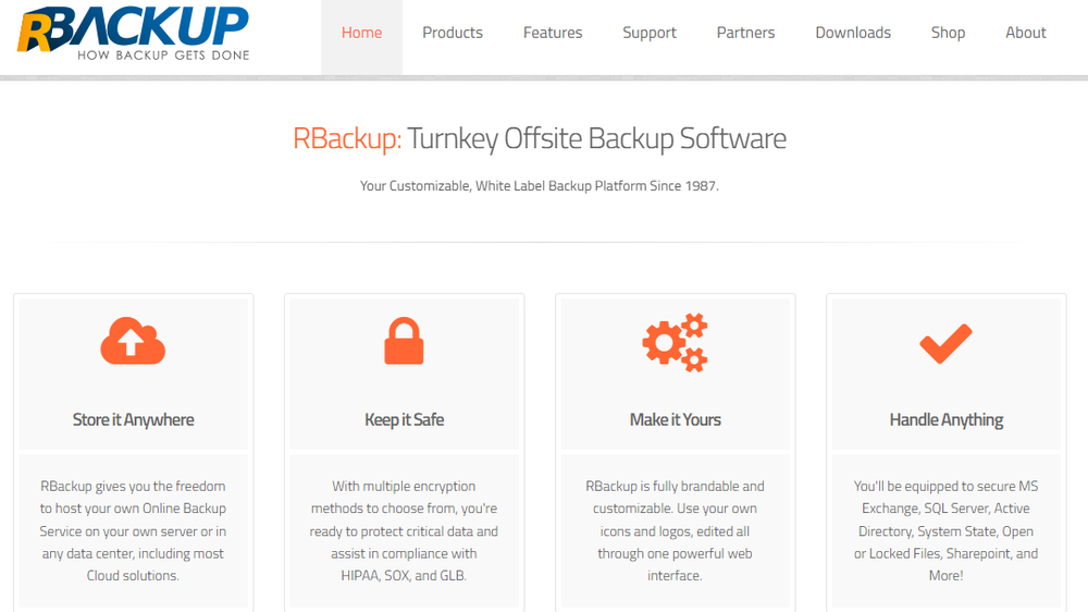 What is White Label Online Backup? | Storagepipe So what does "White Label" Online Backup mean? Quite simply, it refers to the ability to take Storagepipe's CDP online backup services, and completely re-brand them around your own company's brand. With Storagepipe CDP, the online backup software is completely rebranded, and so is the end-user online user portal. Home - RBackup | Online Backup Software Home - RBackup | Online Backup Software RBackup: Turnkey Offsite Backup Software Your Customizable, White Label Backup Platform Since 1987. Store it Anywhere RBackup gives you the freedom to host your own Online Backup Service on your own server or in any data center, including most Cloud solutions. Keep it Safe