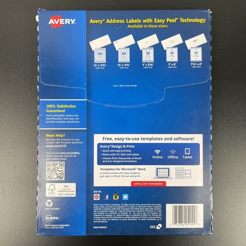 Avery Easy Peel Return Address Labels, Sure Feed ... - Walmart Avery Easy Peel Return Address Labels, Sure Feed Technology, Permanent Adhesive, 2/3" x 1-3/4", 6,000 Labels (5155) · More seller options (14) · About this item ...