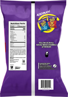 Chips Nutrition Label - This Nutrition Takis Chips Nutrition Label. Why Do African Americans Get More Colon Cancer Than Native Africans? Why study Africans? Because colon cancer is extraordinarily rare within local African populations; like greater than 50 instances lower shares than Americans, white or black. Takis® Rolled | Tortilla Chips | Barcel USA Takis Intense Nacho crunchy rolled corn tortilla chips deliver a bold, cheesy flavor that has all the intensity, none of the spice. Icons / Line Arrow Right Created with Sketch. Food Label Activity.pdf - Takis -Old nutrition label -The... Takis-Old nutrition label-The serving size is 28g which is one small bag, which I believe is a reasonable serving size, I know people would eat more because of how good they are but that one package is enough to satisfy someone as a snack because it doesn't fill you up but is satisfactory-There are 140 calories in one serving and the entire package because the entire package is one serving ... Barcel Takis Xplosion Tortilla Chips - Shop Snacks & Candy at H-E-B Shop Barcel Takis Xplosion Tortilla Chips - compare prices, see product info & reviews, add to shopping list, or find in store. ... Nutrition Facts. Takis Xplosion Tortilla Chips. Serving Size 1.00 oz(30g) ... Always read labels, warnings and directions before using or consuming a product. View full Product Information Disclaimer. Roll over ...